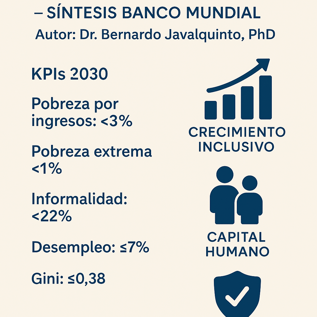 | Gini | 0,43 (2022) | ≤ 0,38 | bancomundial.org |